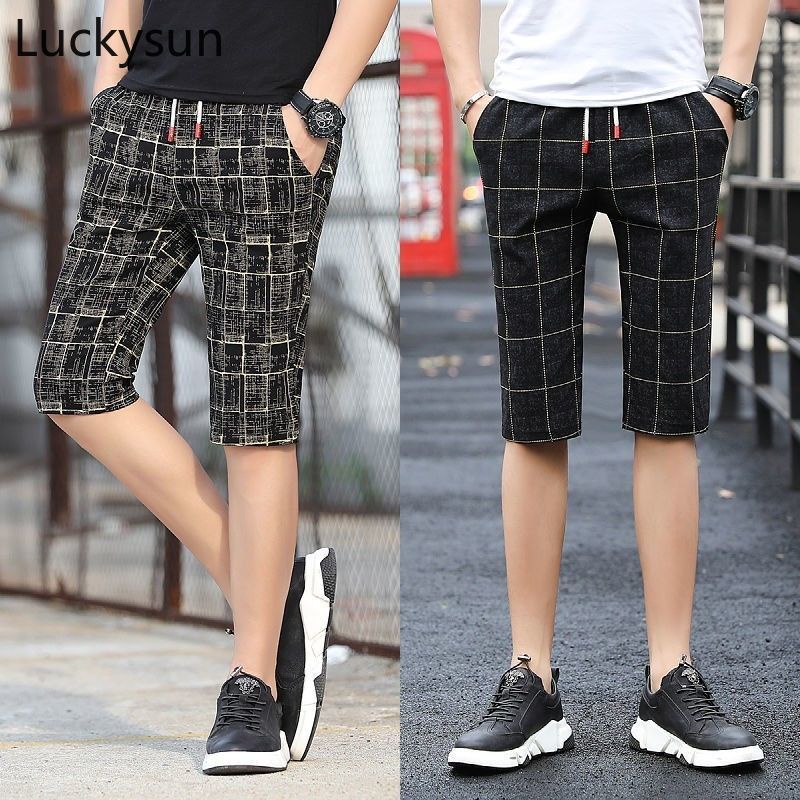 Shorts Men Summer Breathable Checkered Pants Elastic Band Plaid 5 point Pants Very well made.