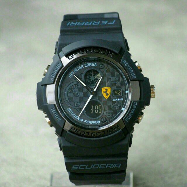CASIO G SHOCK Black Silver FERRARI SCUDERIA Analog Digital Sports Watch Very well made.