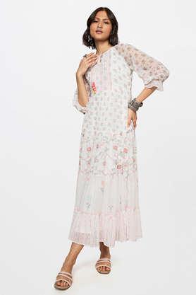 Buy GLOBAL DESI Off White Floral Polyester Round Neck Women s Gown Very well made.