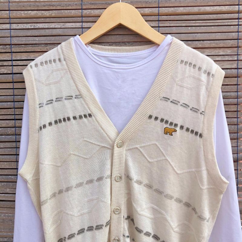 beige striped golden bear sleeveless knitted sweater vest Very well made.