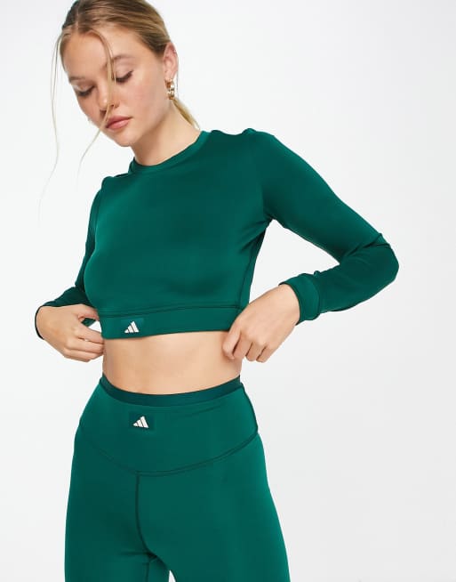 adidas Green Performance Hyperglam Shine Training Crop Long Sleeve Top Very well made.