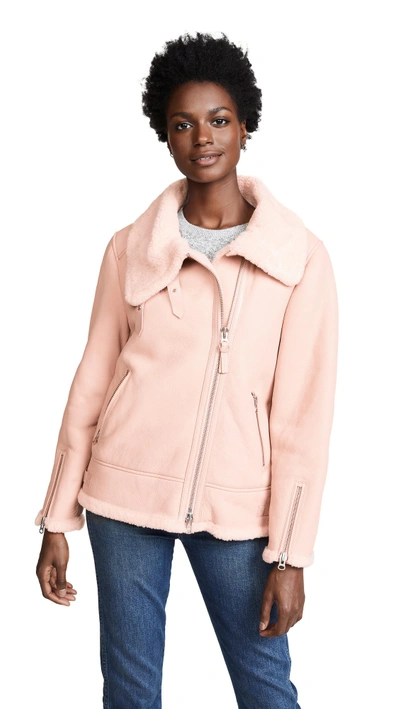 Mackage Minna Sheepskin Moto Jacket in Petal Pink XS Very well made.