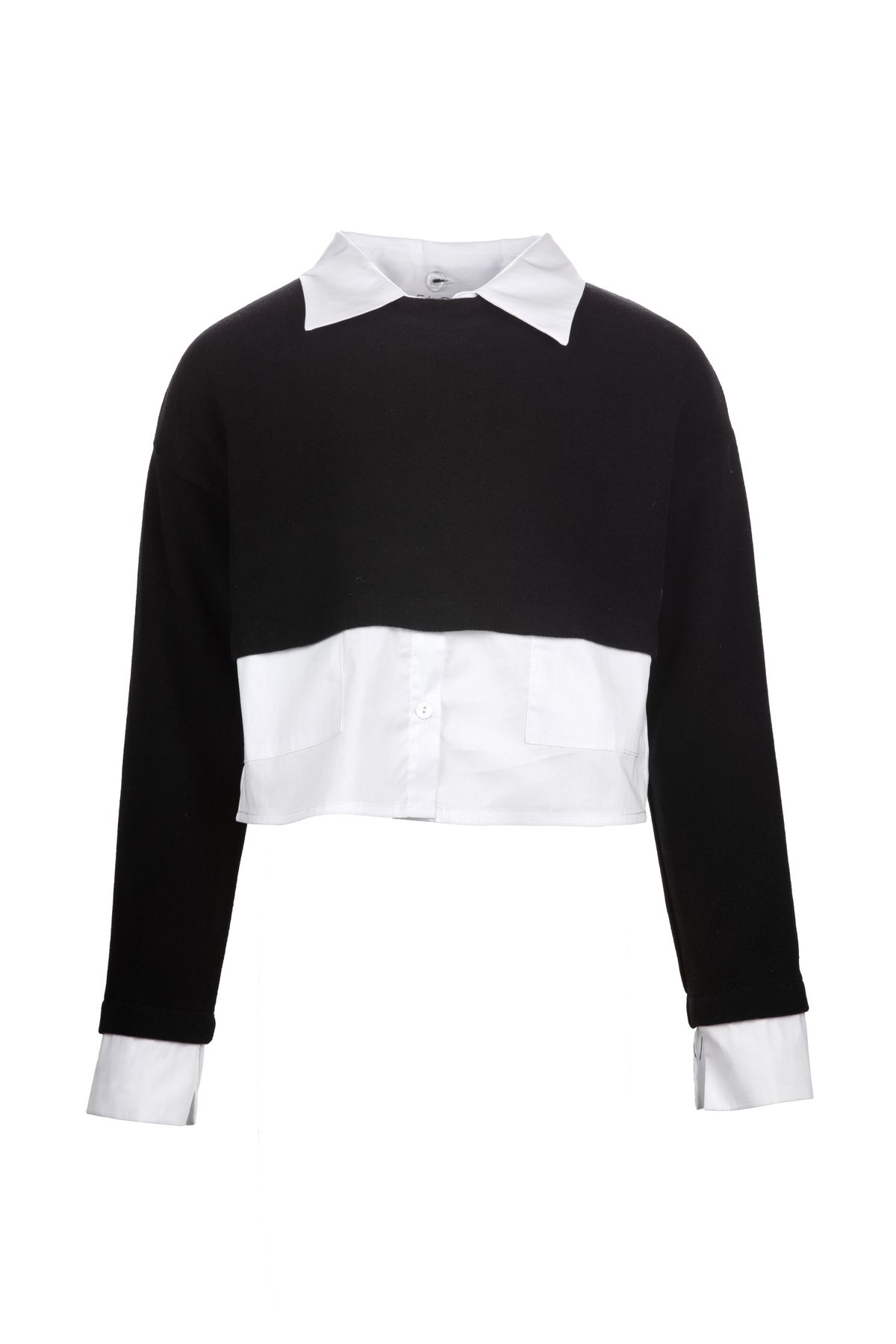 Maglia nera con colletto bianco e polsini effetto Very well made.