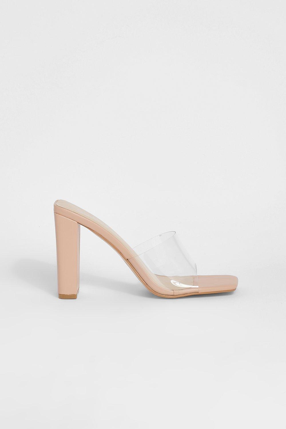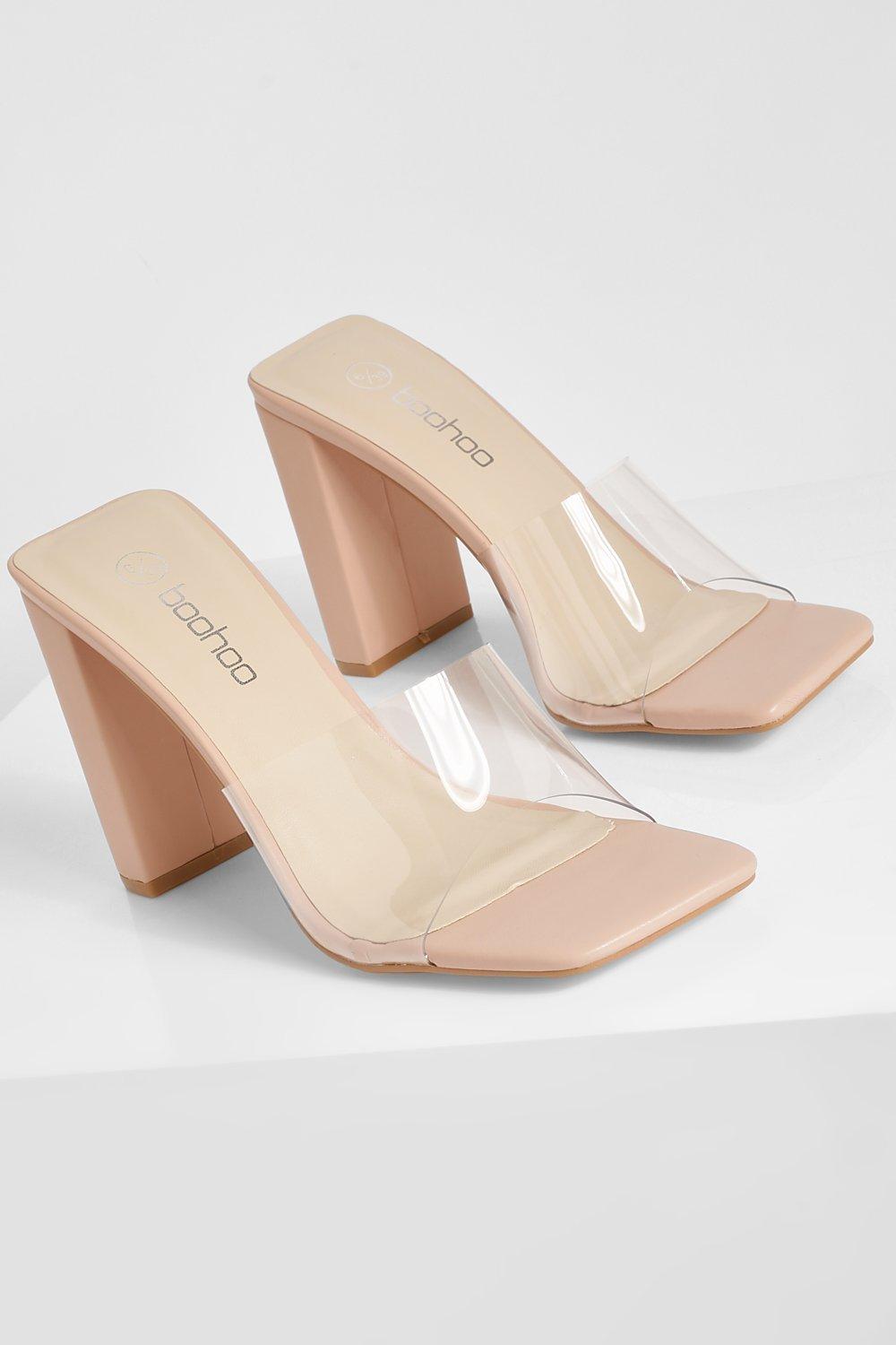Nude Clear High Block Mule Heels Shoes PrettyLittleThing Very well made.