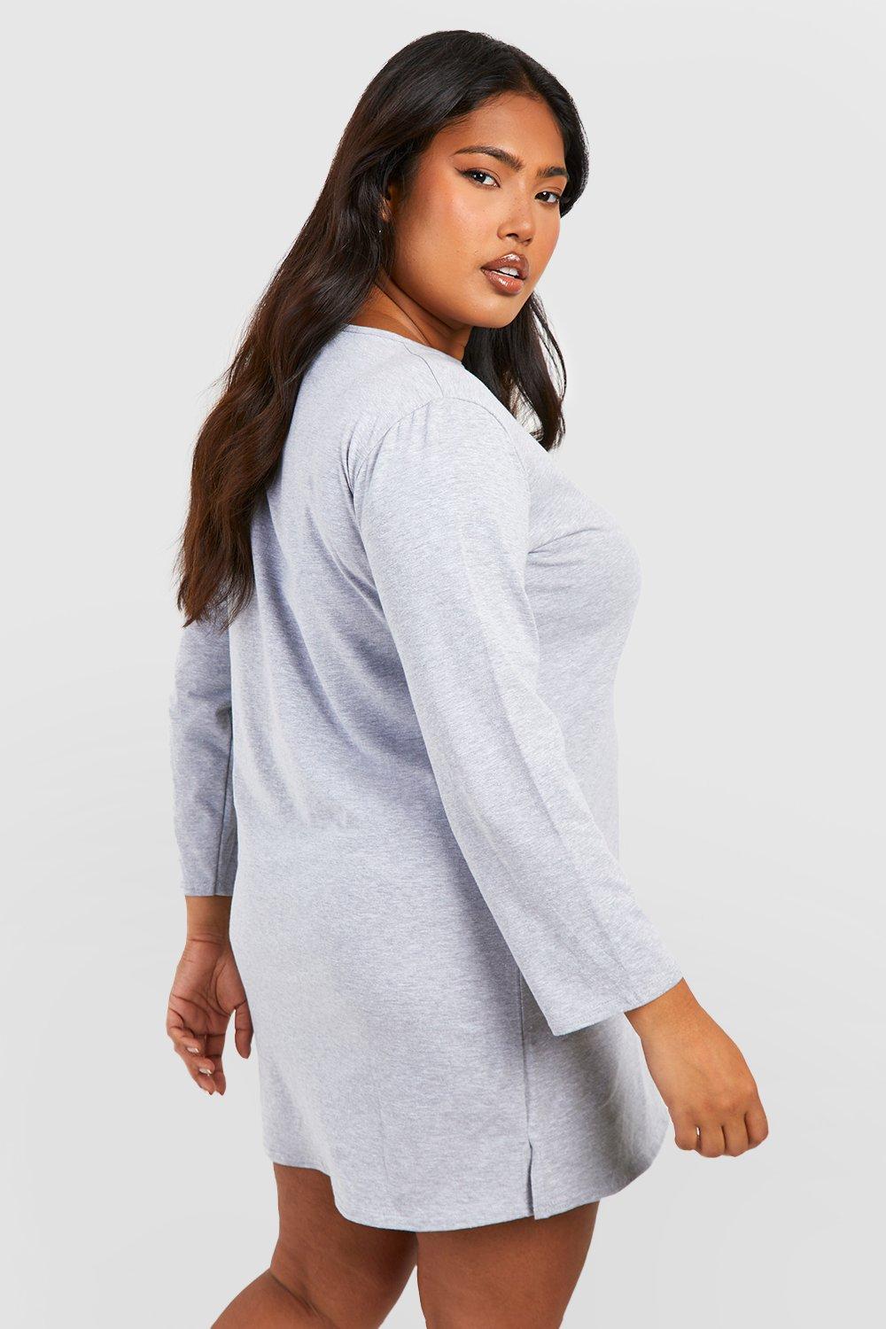 Plus Cotton Long Sleeve Split T shirt Dress boohoo Very well made.
