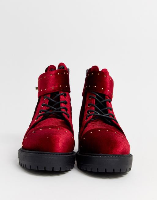 ASOS DESIGN Wide Fit Annabel studded lace up boots in red velvet Very well made.