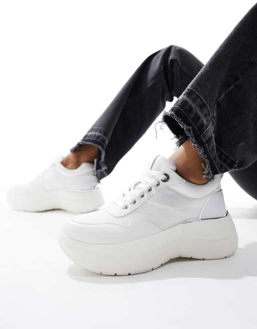 ALDO Etiene super chunky sneakers in white and silver Very well made.
