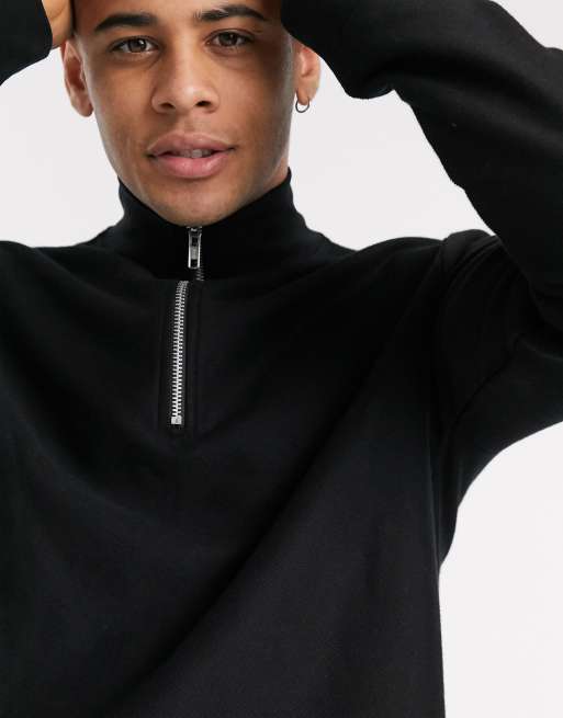 Topman 1 4 zip sweatshirt in black ASOS Very well made.