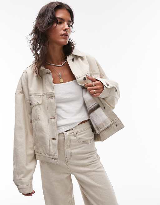 Topshop co ord denim balloon jacket with check lining in ecru Very well made.