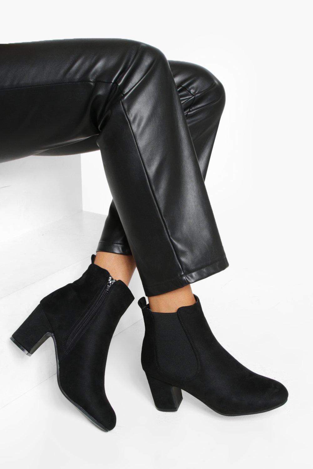Stivaletti alti tronchetti donna nero a punta tonda tacco quadrato Very well made.