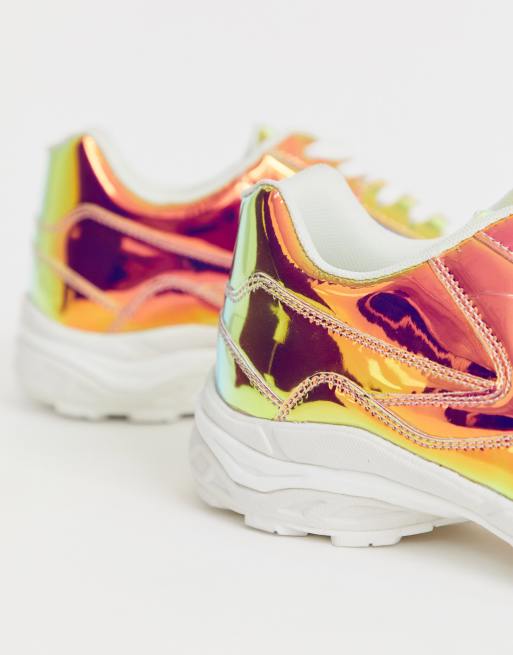 ASOS DESIGN Wide Fit sneakers in iridescent with chunky sole ASOS Very well made.