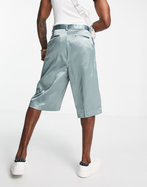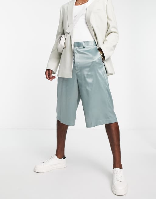 ASOS DESIGN wide leg extra long smart shorts in green high shine Very well made.