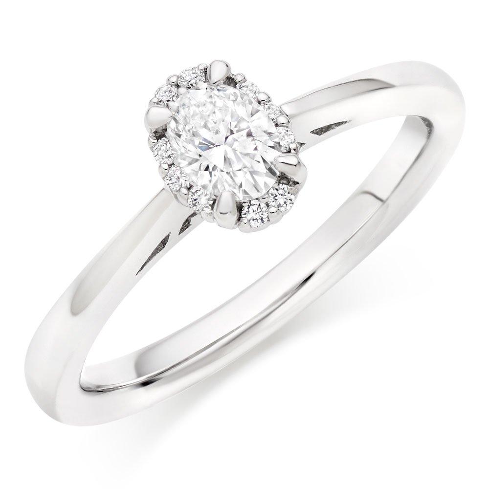 18ct White Gold Diamond Oval Cut Halo Ring Very well made.