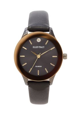 Ellen Tracy Women s Diamond Dial Black Strap Watch belk Very well made.