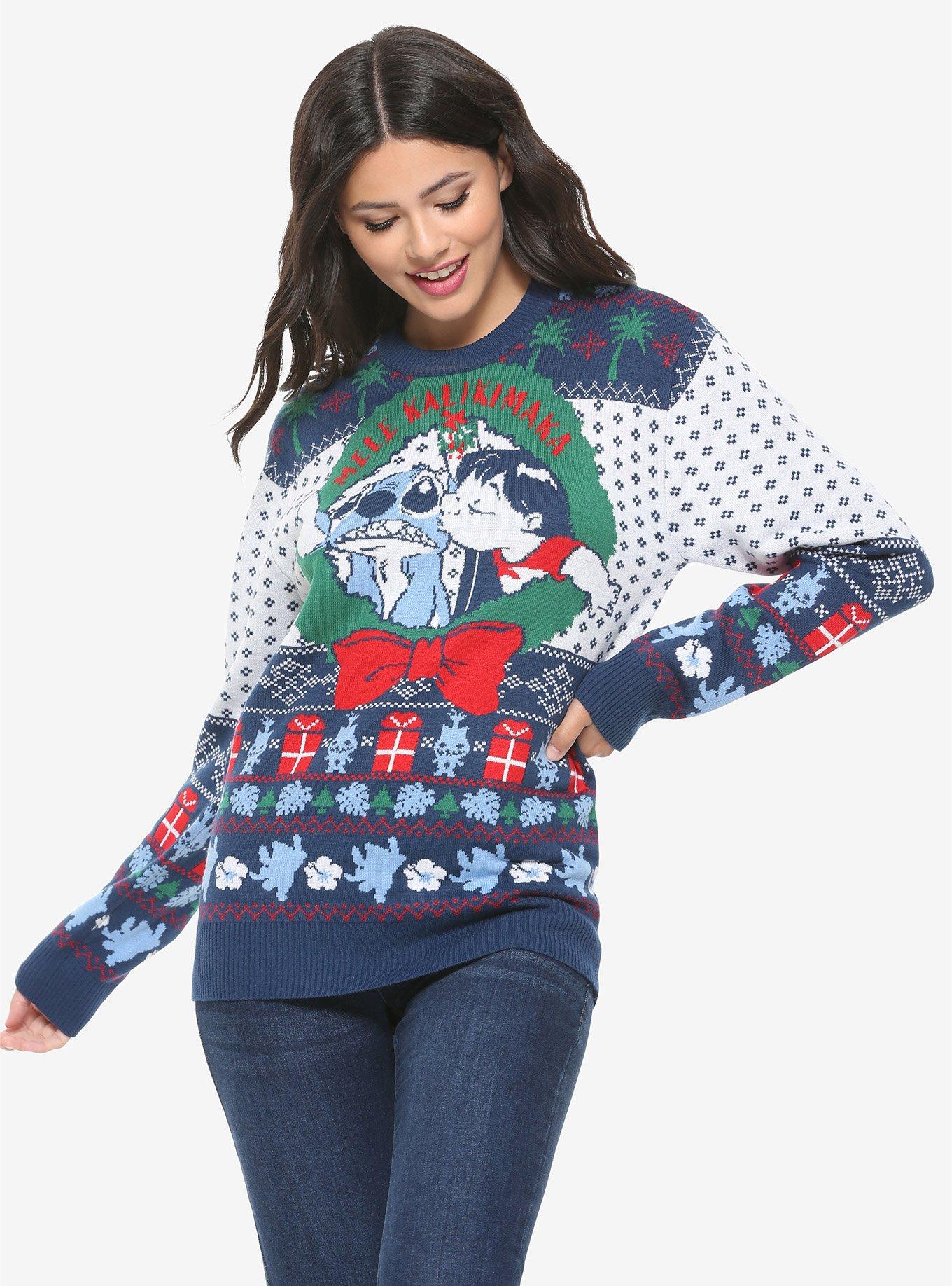 Disney Lilo Stitch Wreath Ugly Holiday Sweater BoxLunch Exclusive Very well made.
