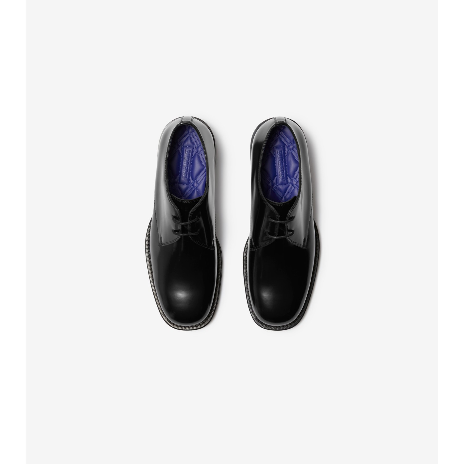Leather Tux Derby Shoes in Black Men Burberry Official Very well made.
